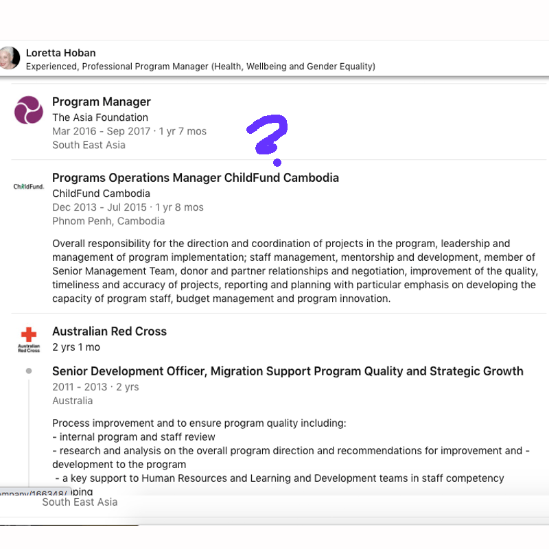 Strange that she left details of her work with the equally anti-life CARE International, Red Cross, Oxfam and Asia Foundation. (Hint: anyone trying to cover their tracks when it comes to involvement with abortion might want to replace the term “sexual and reproductive health” with something a little more, well…. prolife?)