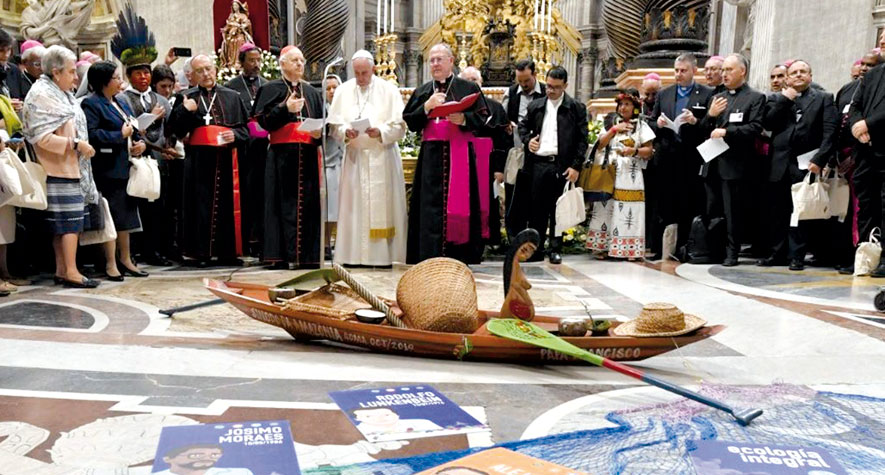 Pope Francis with the Pachamama idol in St. Peter’s Basilica