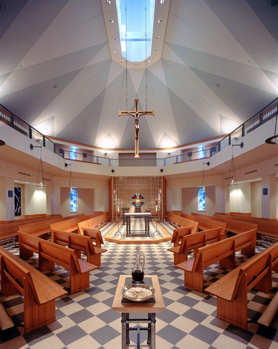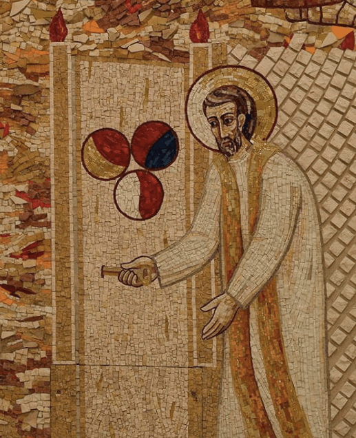 Although black-and-white tiled floors are not unusual in Catholic churches, it is perhaps no coincidence that one is found in this particular church. The contrast between black and white is yet another reference to finding ‘balance’ between opposites.