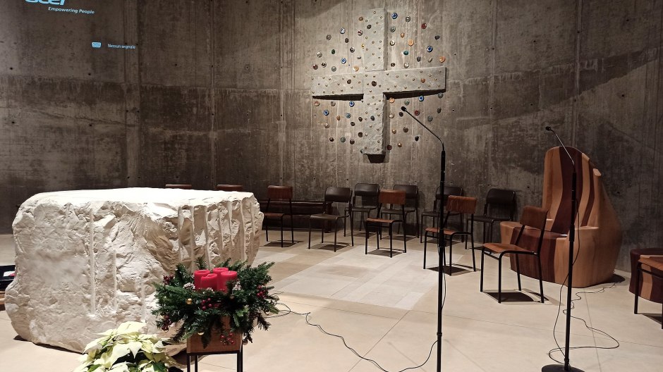 The so-called ‘Body Cube’ is set in front of the altar and is large enough to stand in. It is quite disturbing, containing 49 dismembered body parts of Jesus Christ.