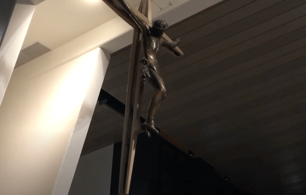 Artist Michael Kos has taken classic images of Christ and subjected them to abuse in the name of his spiritualised ‘art’. Kos claims that his three pieces, a crucifix, a tabernacle and a bizarre architectural structure in front of the altar are meant to represent the Son of God being subjected to a ‘real ordeal’ – something he undoubtedly managed to achieve by his disrespectful display.